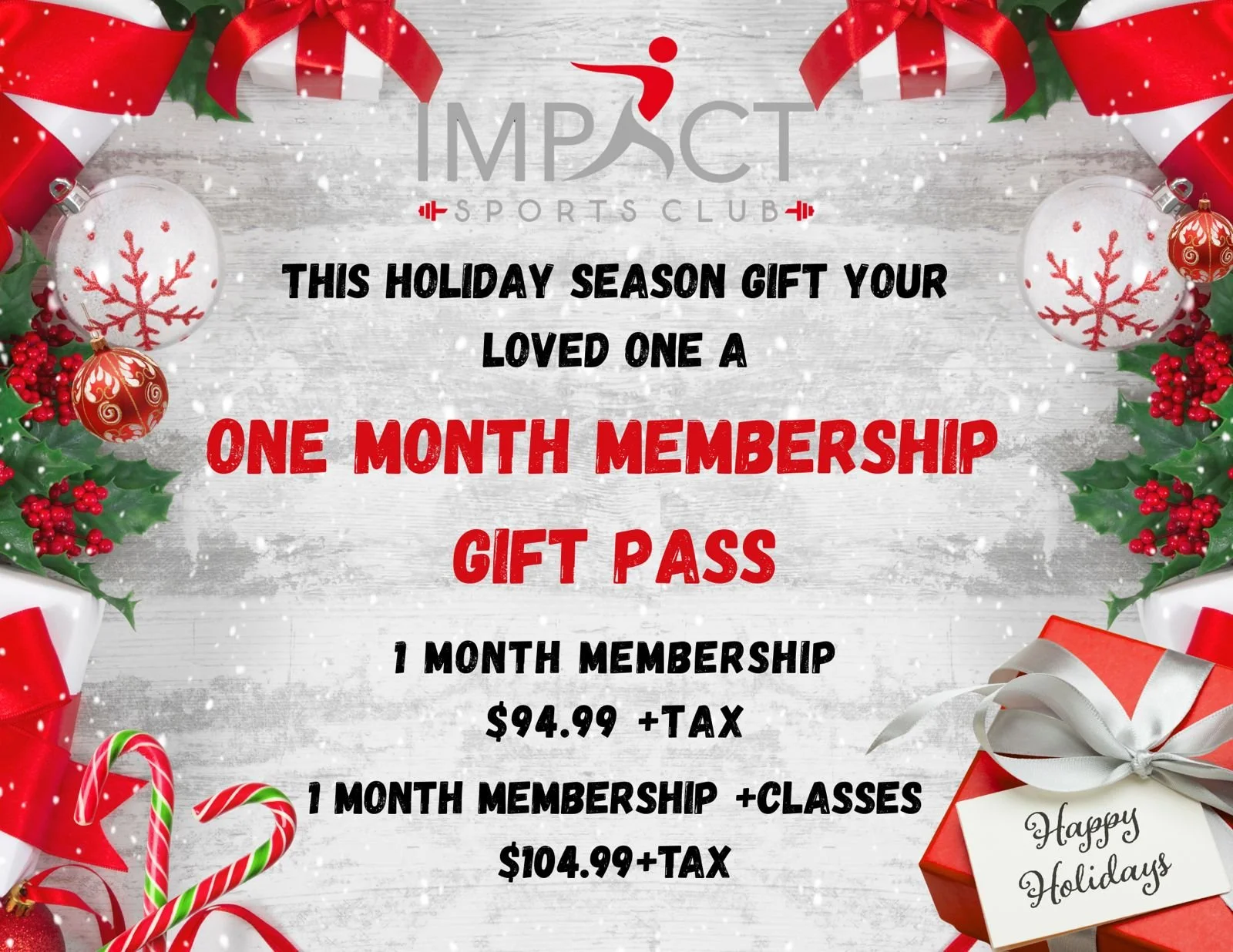 Get Some Impact › Christmas Gift 1 Mont Membership Image 1 of 1 Christmas Gift 1 Mont Membership $94.99 Give your loved one or yourself a full access to our beautiful facility (Classes and hydromassage not included) Quantity: Add To Cart Added! Give your loved one or yourself a full access to our beautiful facility (Classes and hydromassage not included)