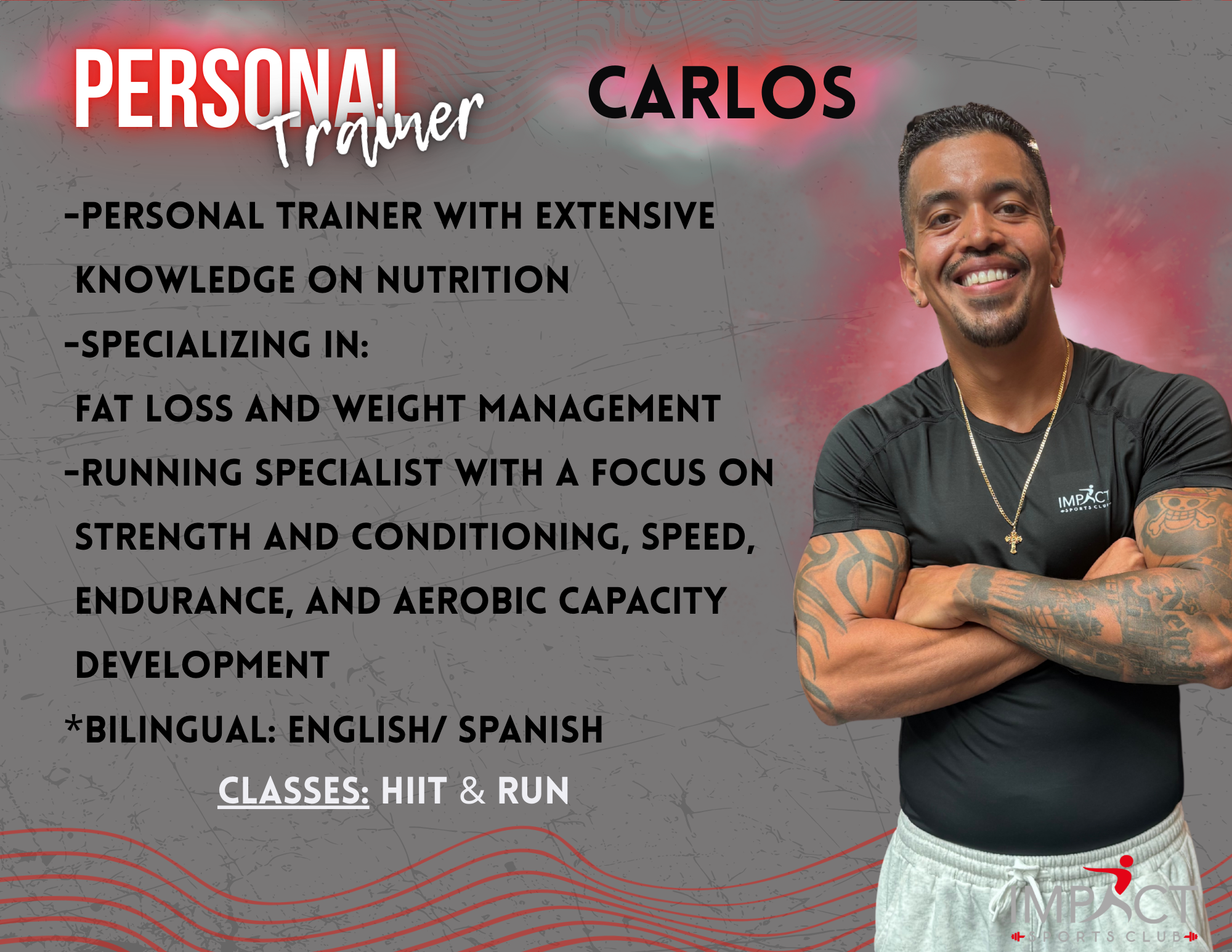 I started working out in the gym at 18 years old. In 2015 I was in a motorcycle accident that severed my patella tendons and cause me to get knee construction surgery. After that my fitness fell off and I was living a unhealthy lifestyle until 2022 where I decided to take accountability and become the best version of myself I can possible be. I am a hybrid athlete and I became a personal trainer to help others change their mentality on fitness and create a healthy relationship with the gym and with nutrition.